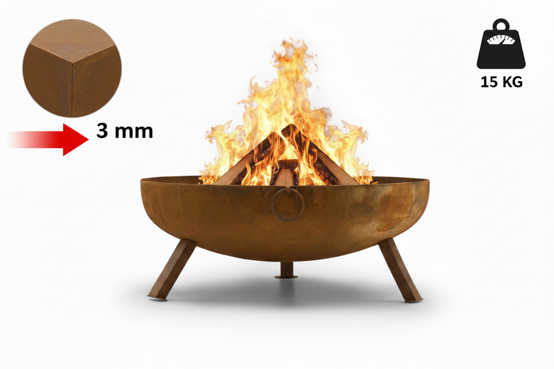 Massives Material – Gefertigt aus 3 mm starkem Cortenstahl – deutlich stabiler als viele Standard-Feuerschalen auf dem Markt.