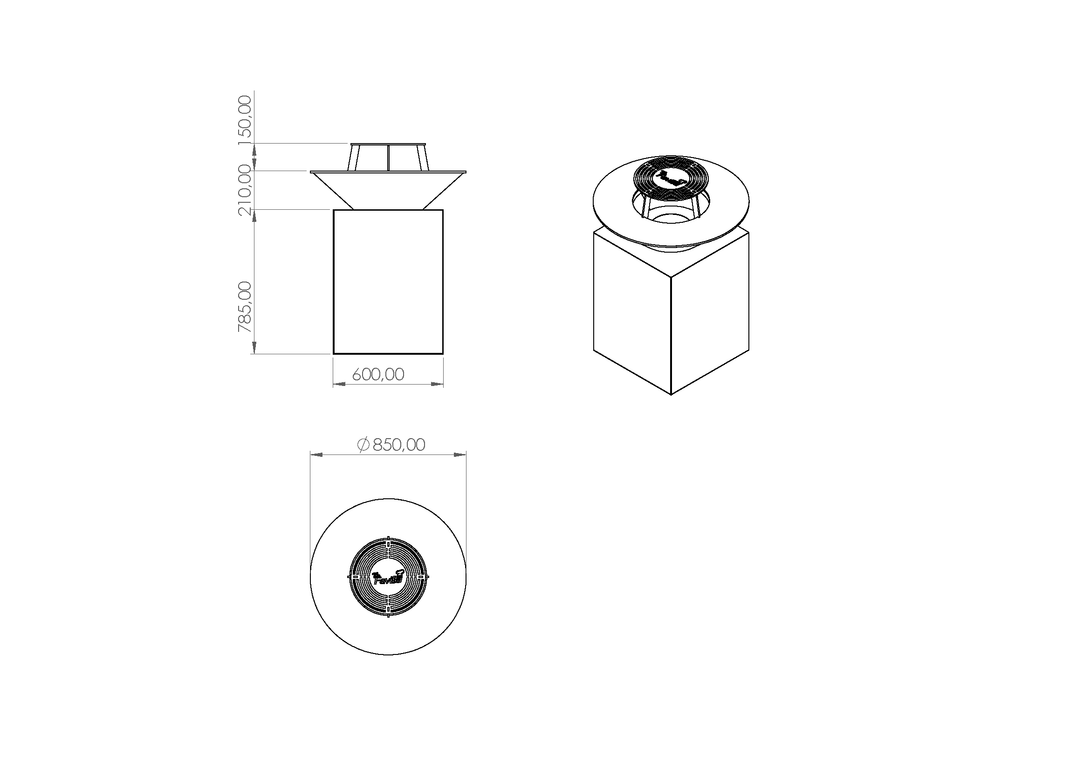 FAVILLA FUEGO CORTEN Feuerstelle – Ø 85 cm Grillplatte | 105 kg | 785×600×1145 mm