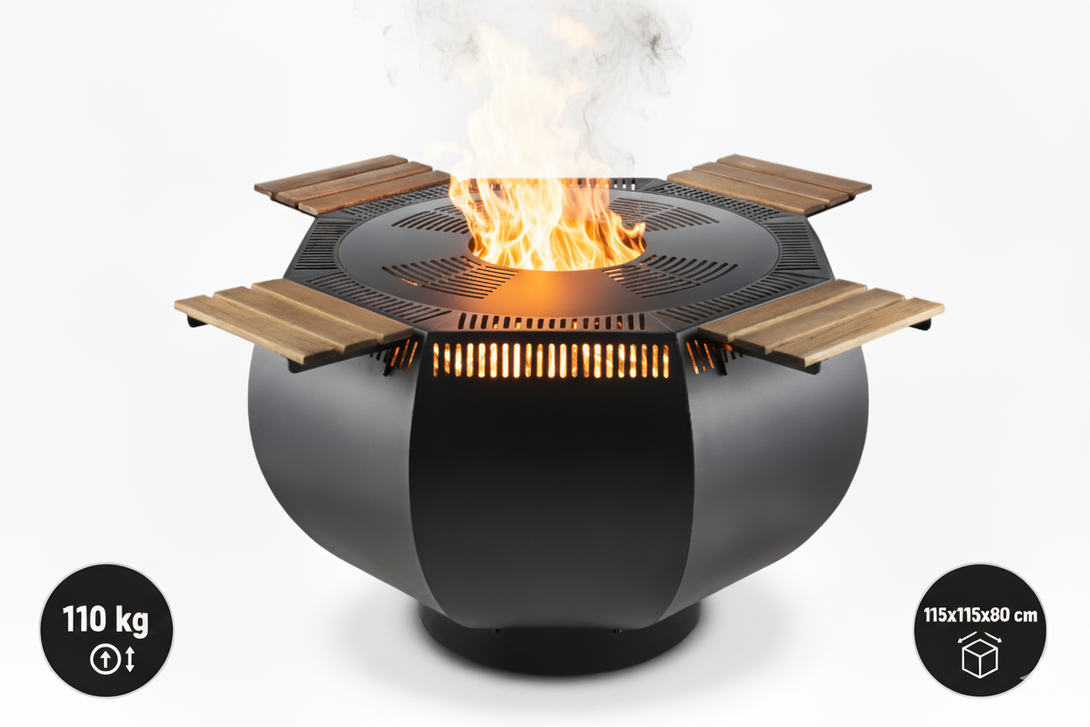 Ob du eine Feuerschale mit Grillring, eine Feuerstelle mit Grillplatte oder eine stabile Plancha für Outdoor-Grillabende suchst – der WOX vereint alle Funktionen in einem Gerät. Die schwarze Pulverbeschichtung schützt nicht nur zuverlässig vor Wind, Wetter und Kratzern, sondern verleiht dem Gerät auch einen modernen, zeitlosen Look.